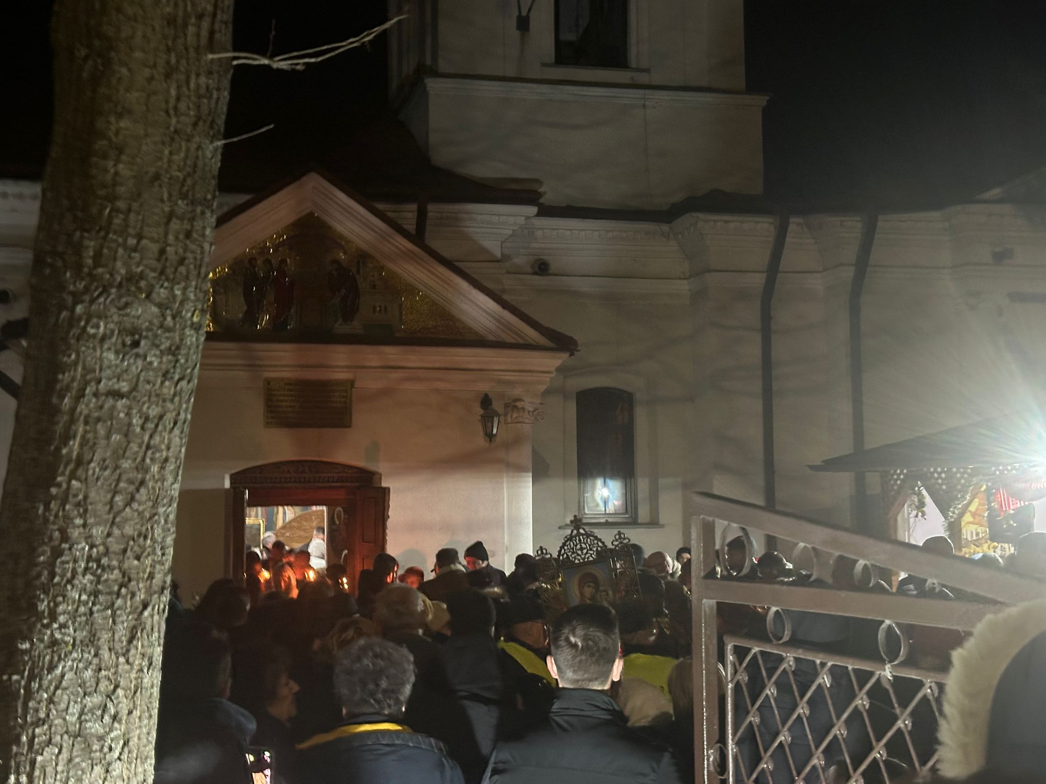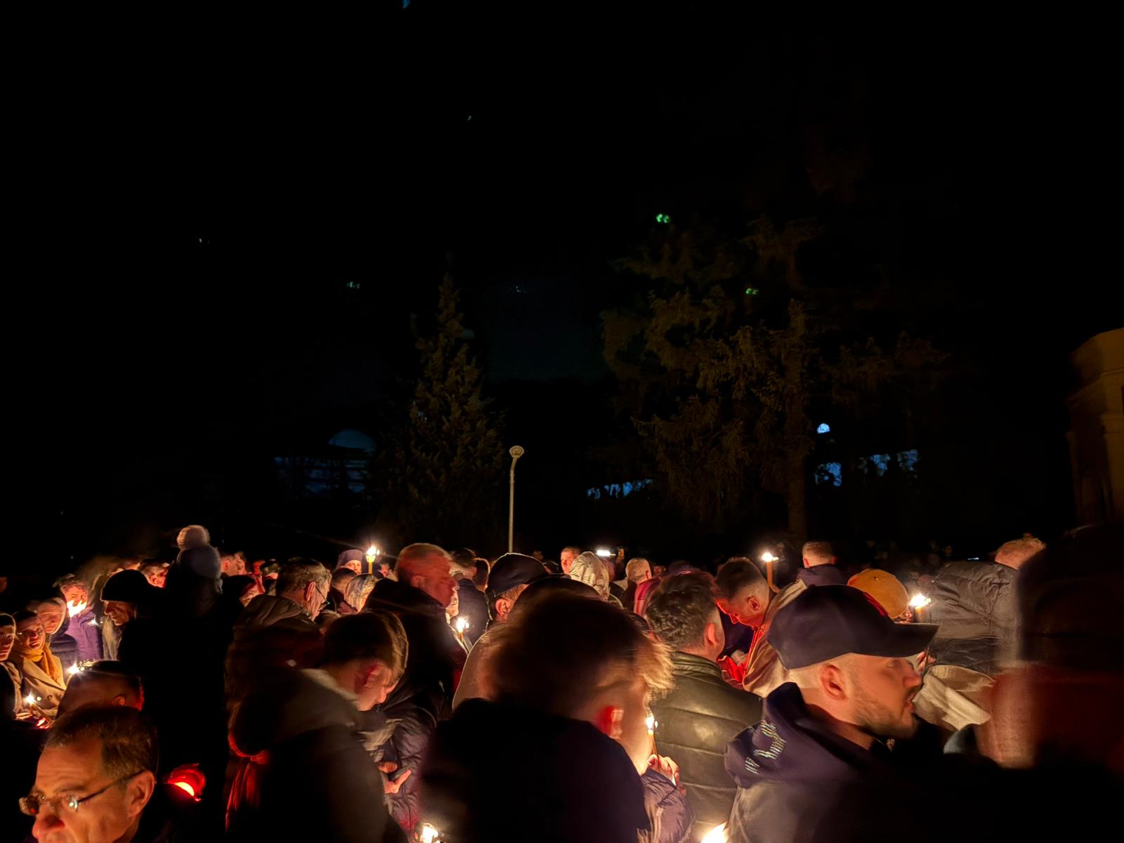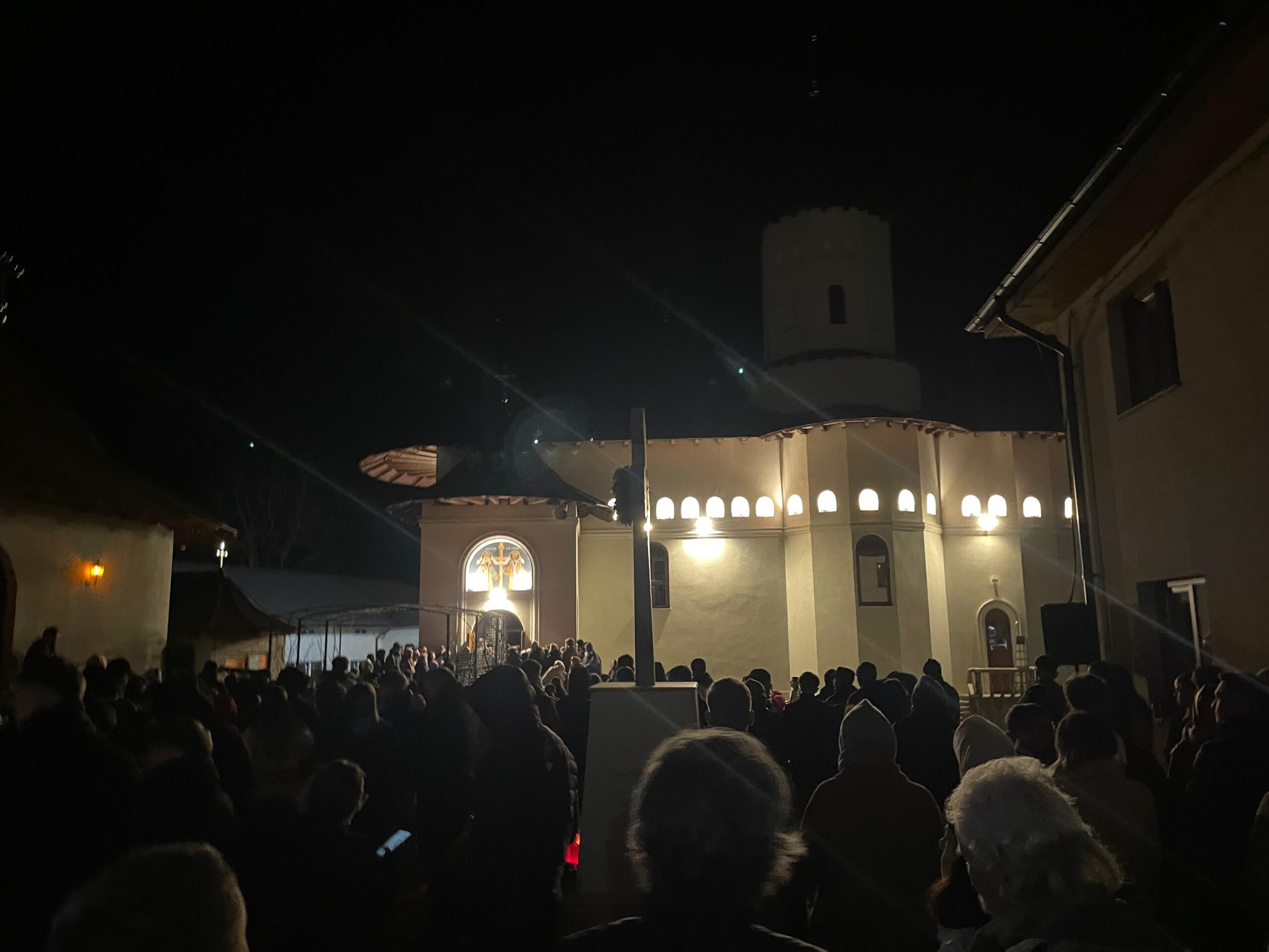 Curtea lăcașului părea inițial goală, dar până spre ora 00:00, aceasta s-a umplut de credincioși veniți să ia Lumina Sfântă a Învierii.