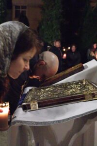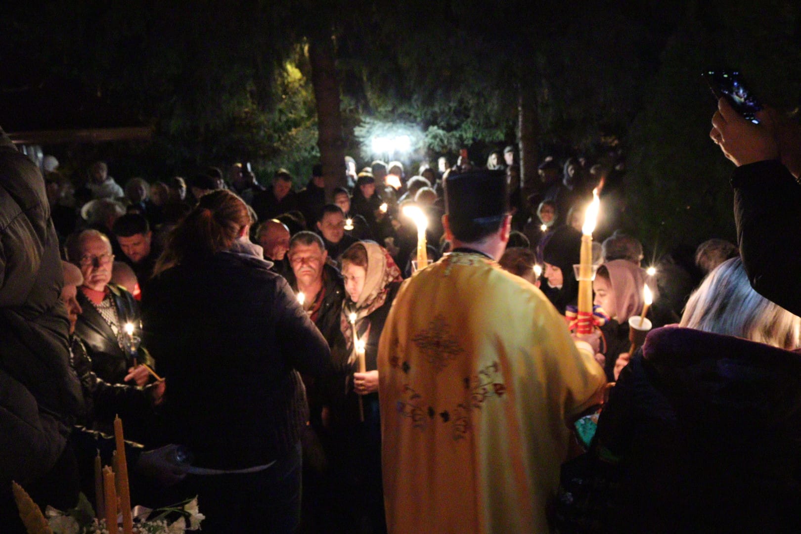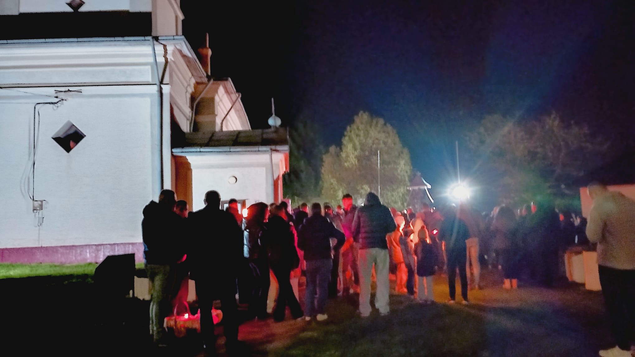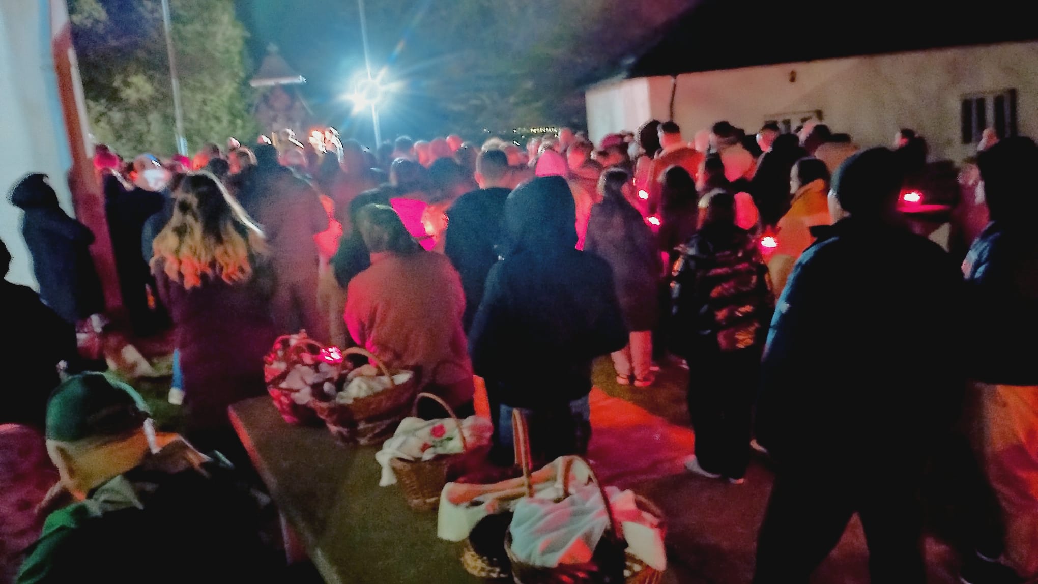 Curtea lăcașului părea inițial goală, dar până spre ora 00:00, aceasta s-a umplut de credincioși veniți să ia Lumina Sfântă a Învierii.