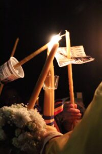În momentul în care am inceput sa cântăm cu toții „Hristos a Înviat”, am simțit cum ,,piatra’’ aia de pe suflet pe care o purtăm zilnic, s-a evaporat pur și simplu. Era o liniște ciudată, de parcă tot universul își ținea respirația, iar mirosul de ceară topită ne-a șoptit tuturor că totul va fi bine.
