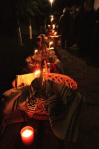 La Biserica „Sfinții Constantin și Elena” din Darabani au venit, în noaptea de Înviere, mulți credincioși pentru a lua Sfânta Lumină și pentru a sfinți coșul de Paște.